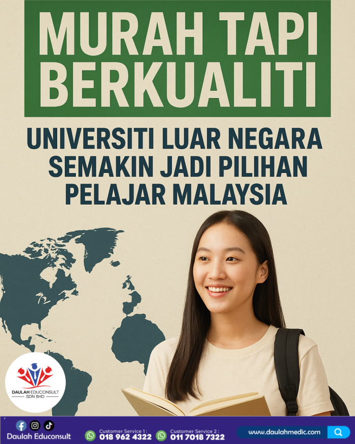 Banyak universiti luar negara yang menawarkan pendidikan berkualiti pada kos yang jauh lebih berpatutan berbanding universiti di negara-negara seperti Rusia, Indonesia, Poland dan lain lain.